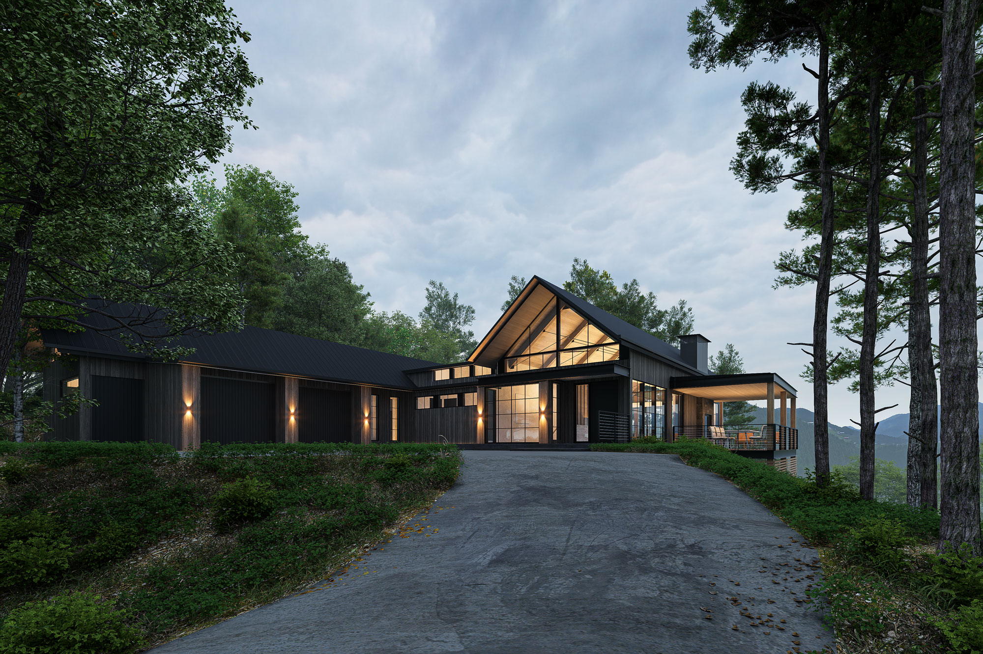 The Lake Toxaway Residence explores the intersection of vernacular mountain architecture and modern design principles.